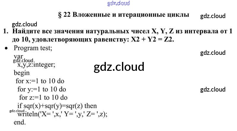 Ответы к §22. Вложенные и итерационные циклы по Информатике 10 класс Учебник Семакин Базовый уровень Бином