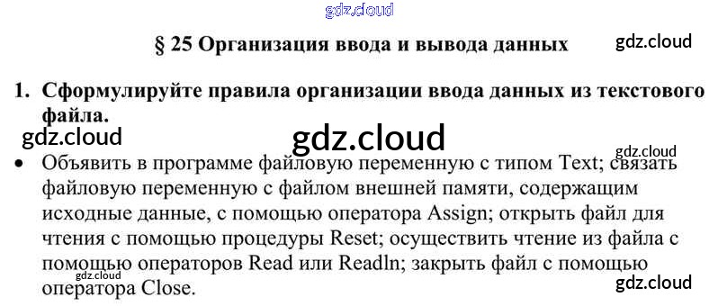Ответы к §25. Организация ввода и вывода данных с использованием файлов по Информатике 10 класс Учебник Семакин Базовый уровень Бином