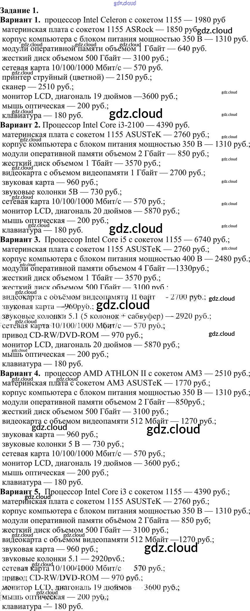 Работа 2.3. Проектное задание. Выбор конфигурации компьютера Практические работы к главе 2 «Информационные процессы» по Информатике 10 класс Учебник Семакин Базовый уровень Бином