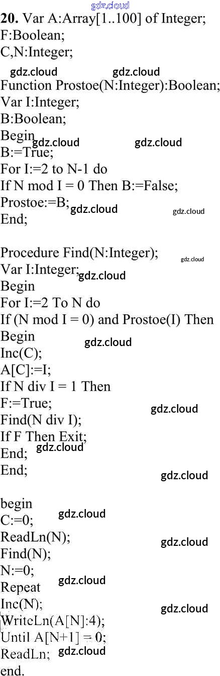 Ответ на задание 20 Учебник Информатика за 10 (десятый) класс Семакин, Хеннер, Шеина Базовый уровень 2017