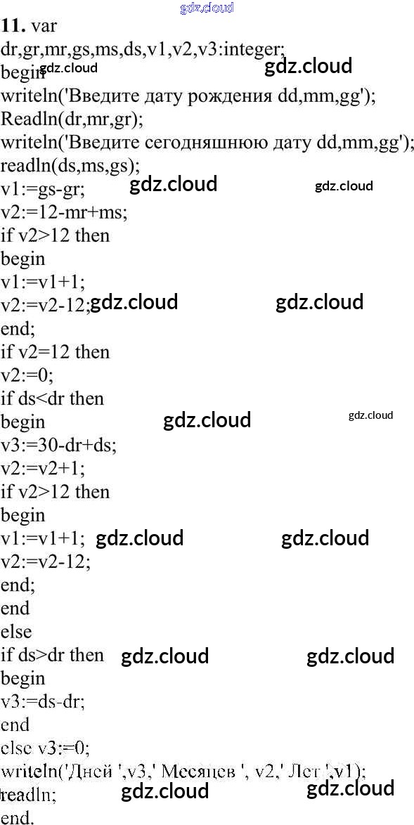 Ответ на задание 11 Учебник Информатика за 10 (десятый) класс Семакин, Хеннер, Шеина Базовый уровень 2017