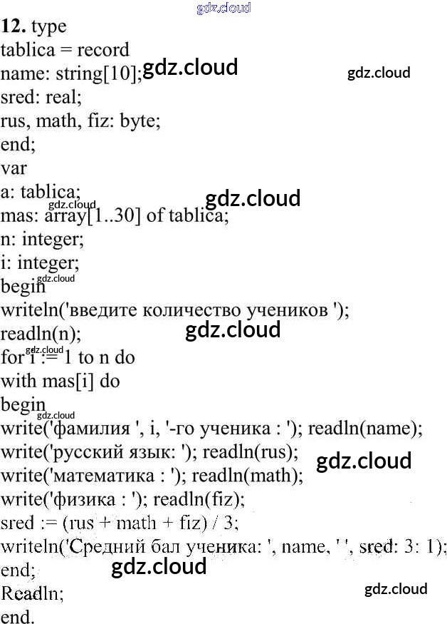 Ответ на задание 12 Учебник Информатика за 10 (десятый) класс Семакин, Хеннер, Шеина Базовый уровень 2017