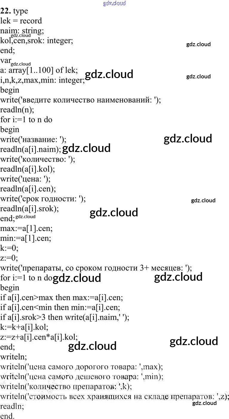 Ответ на задание 22 Учебник Информатика за 10 (десятый) класс Семакин, Хеннер, Шеина Базовый уровень 2017