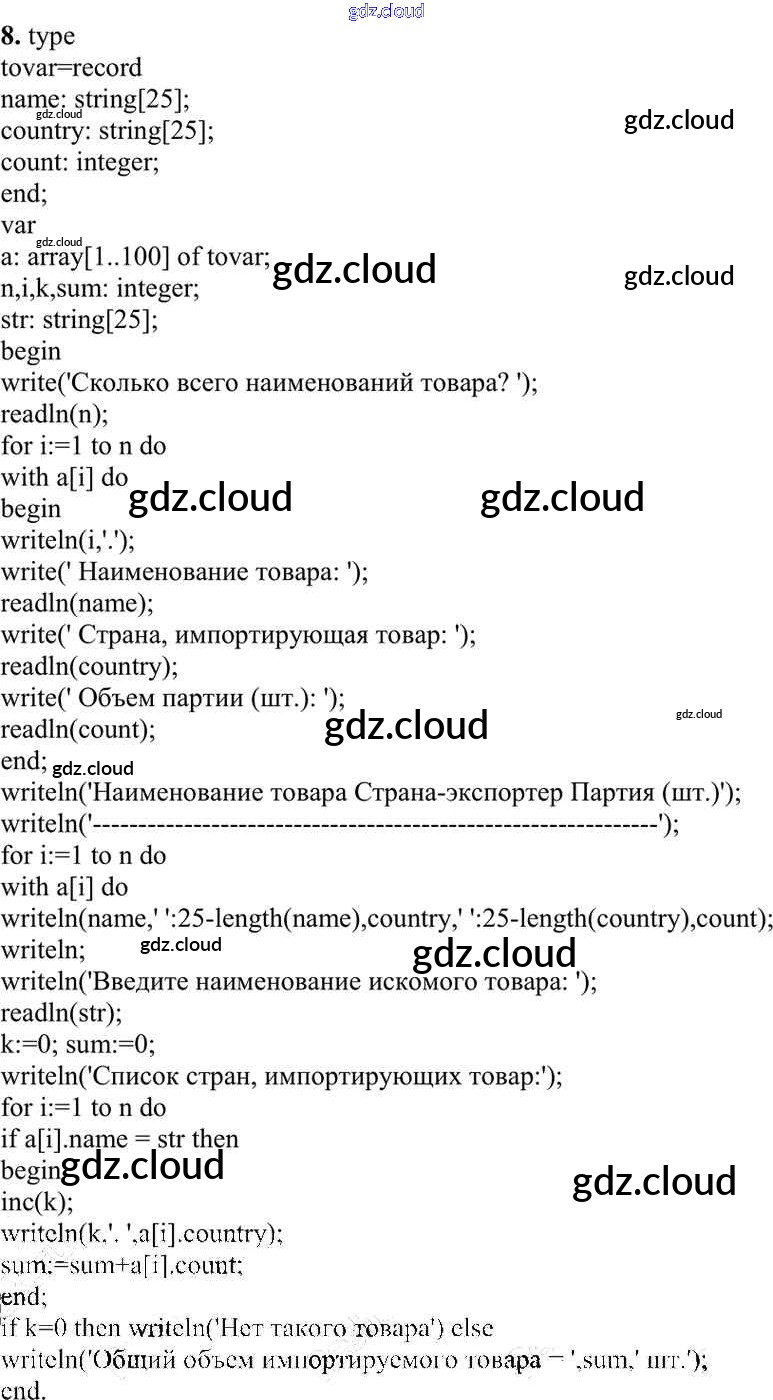 Ответ на задание 8 Учебник Информатика за 10 (десятый) класс Семакин, Хеннер, Шеина Базовый уровень 2017