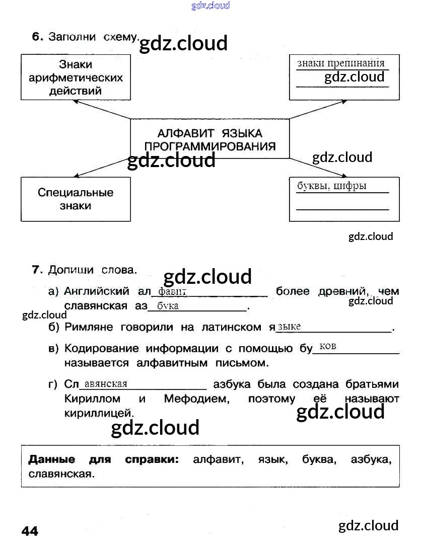 Ответ на задание стр. 44 Рабочая тетрадь Информатика за 2 (второй) класс Матвеева, Челак, Конопатова, Панкратова, Нурова УМК 2012 Часть 1, 2
