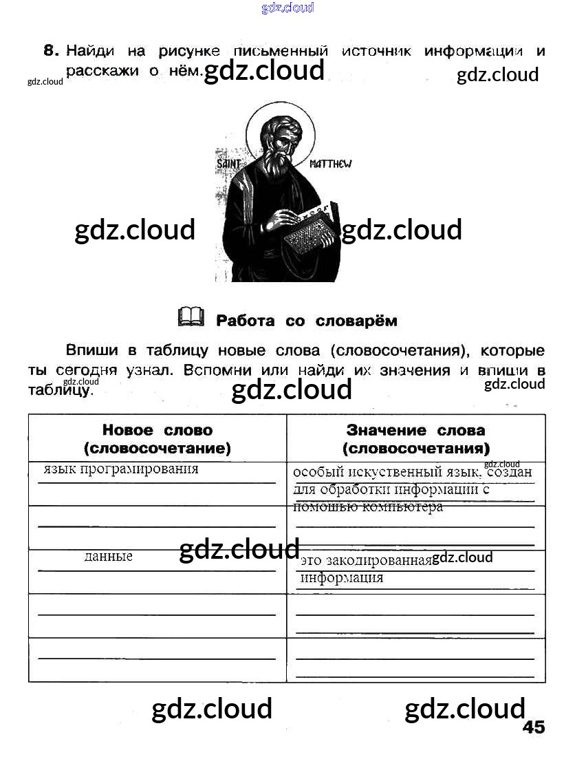 Ответ на задание стр. 45 Рабочая тетрадь Информатика за 2 (второй) класс Матвеева, Челак, Конопатова, Панкратова, Нурова УМК 2012 Часть 1, 2