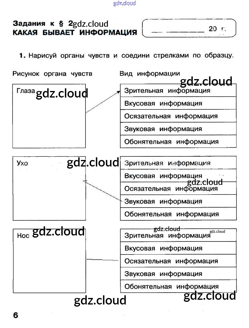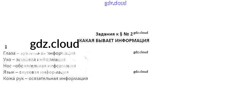§2. Какая бывает информация Ответы к Части 1. Страницы по Информатике 2 класс Рабочая тетрадь Матвеева УМК Часть 1, 2 Бином