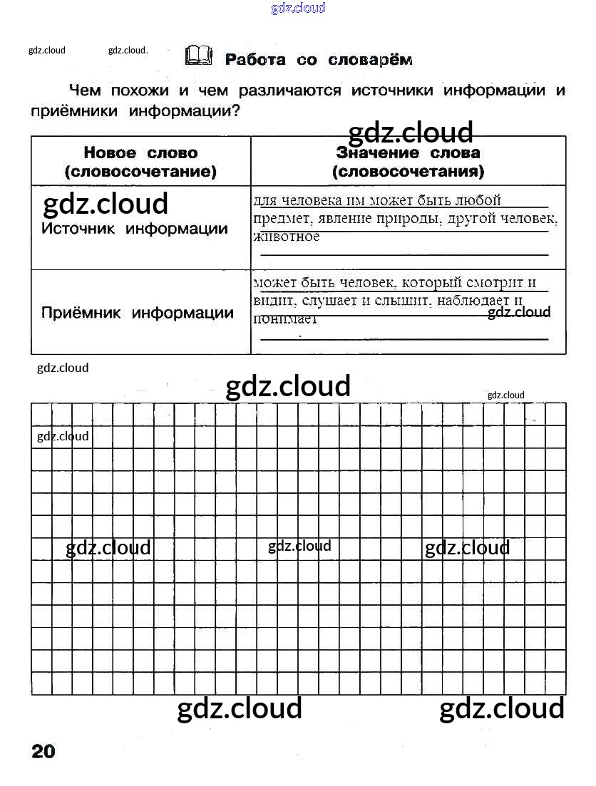 Ответ на задание стр. 20 Рабочая тетрадь Информатика за 2 (второй) класс Матвеева, Челак, Конопатова, Панкратова, Нурова УМК 2012 Часть 1, 2