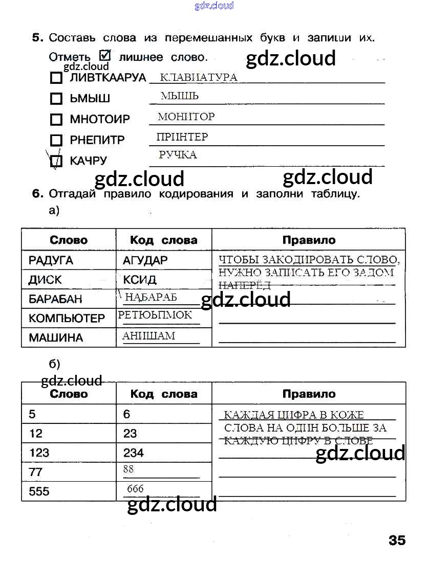 Ответ на задание стр. 35 Рабочая тетрадь Информатика за 2 (второй) класс Матвеева, Челак, Конопатова, Панкратова, Нурова УМК 2012 Часть 1, 2