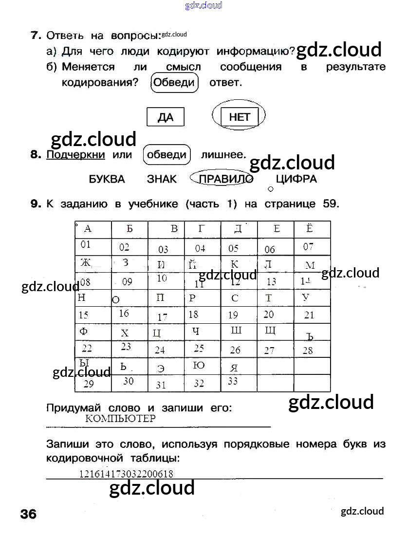 §7. Кодирование информации Ответы к Части 1. Страницы по Информатике 2 класс Рабочая тетрадь Матвеева УМК Часть 1, 2 Бином