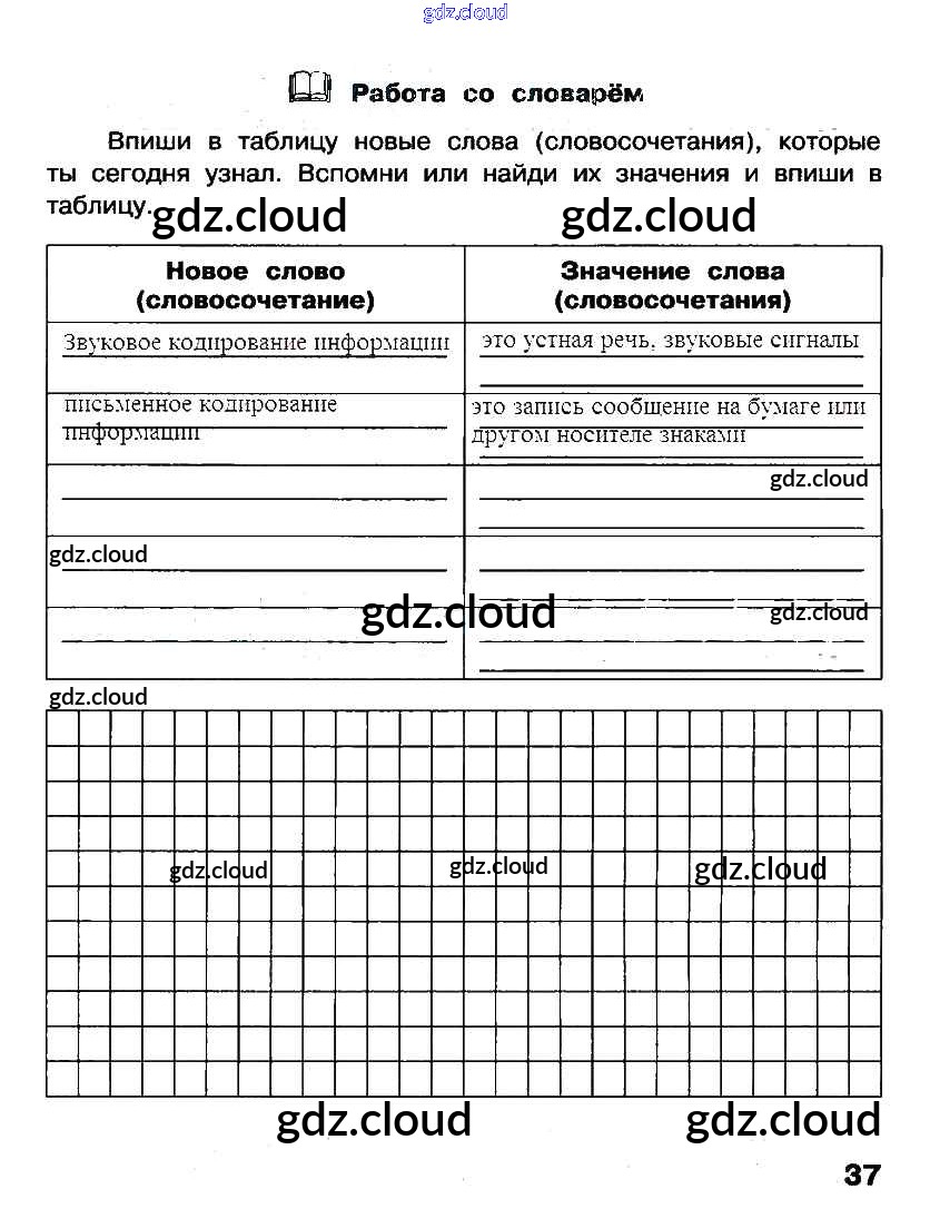 Ответ на задание стр. 37 Рабочая тетрадь Информатика за 2 (второй) класс Матвеева, Челак, Конопатова, Панкратова, Нурова УМК 2012 Часть 1, 2