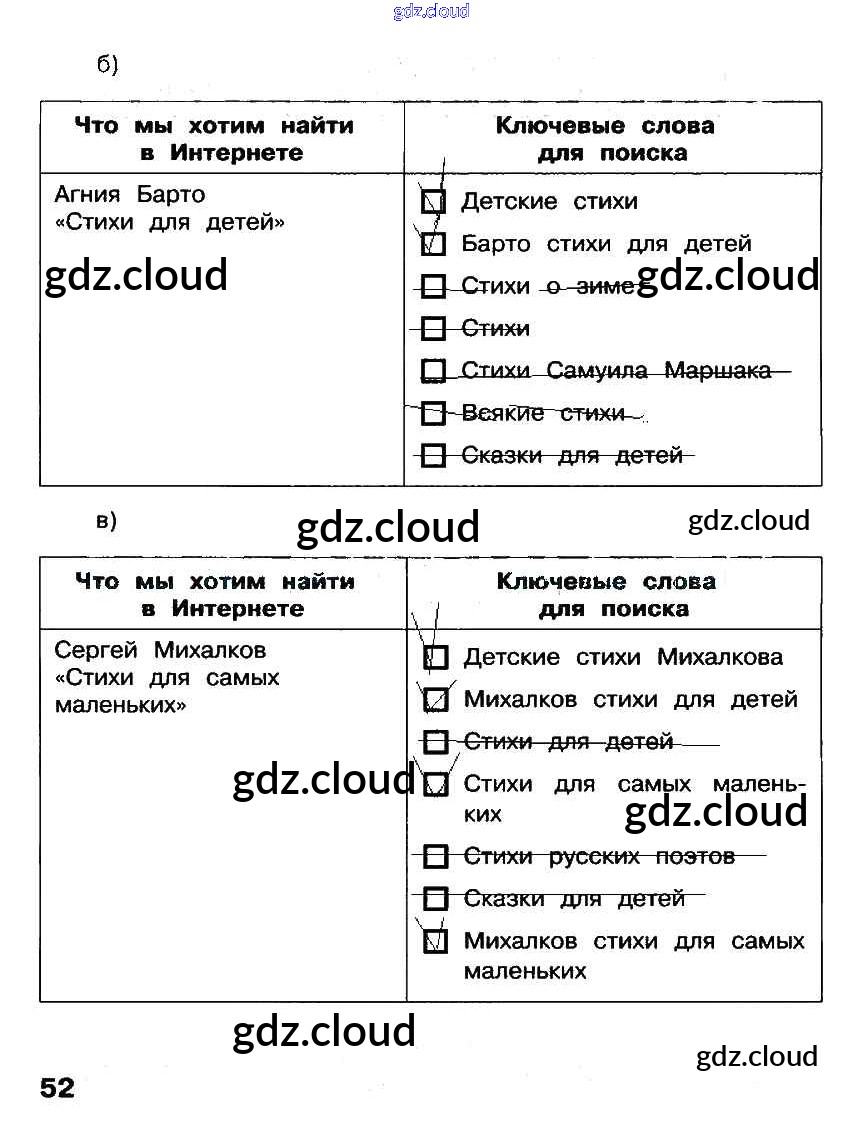 Ответ на задание стр. 52 Рабочая тетрадь Информатика за 2 (второй) класс Матвеева, Челак, Конопатова, Панкратова, Нурова УМК 2012 Часть 1, 2