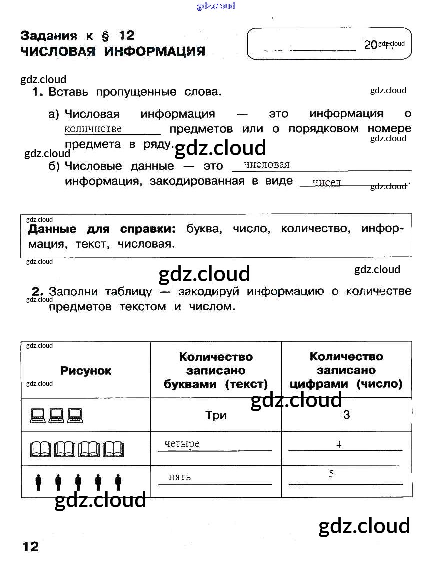 §12. Числовая информация Ответы к Части 2. Страницы по Информатике 2 класс Рабочая тетрадь Матвеева УМК Часть 1, 2 Бином
