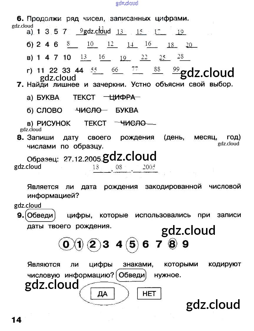 Ответ на задание стр. 14 Рабочая тетрадь Информатика за 2 (второй) класс Матвеева, Челак, Конопатова, Панкратова, Нурова УМК 2012 Часть 1, 2