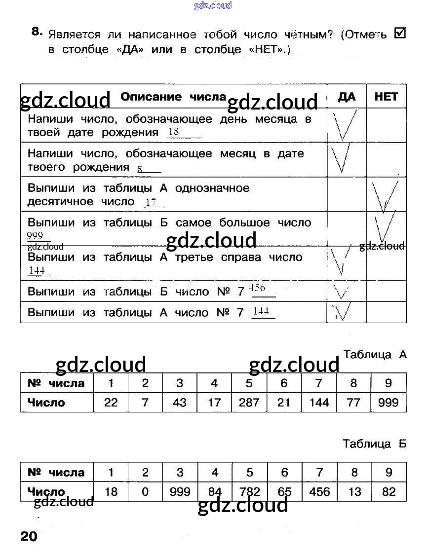 Ответ на задание стр. 20 Рабочая тетрадь Информатика за 2 (второй) класс Матвеева, Челак, Конопатова, Панкратова, Нурова УМК 2012 Часть 1, 2