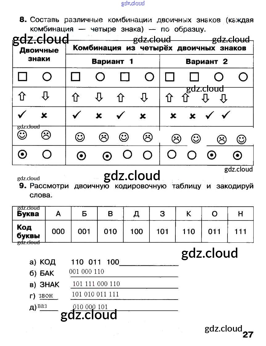 Ответ на задание стр. 27 Рабочая тетрадь Информатика за 2 (второй) класс Матвеева, Челак, Конопатова, Панкратова, Нурова УМК 2012 Часть 1, 2