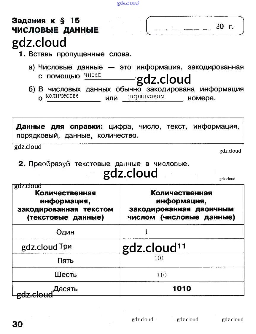 §15. Числовые данные Ответы к Части 2. Страницы по Информатике 2 класс Рабочая тетрадь Матвеева УМК Часть 1, 2 Бином