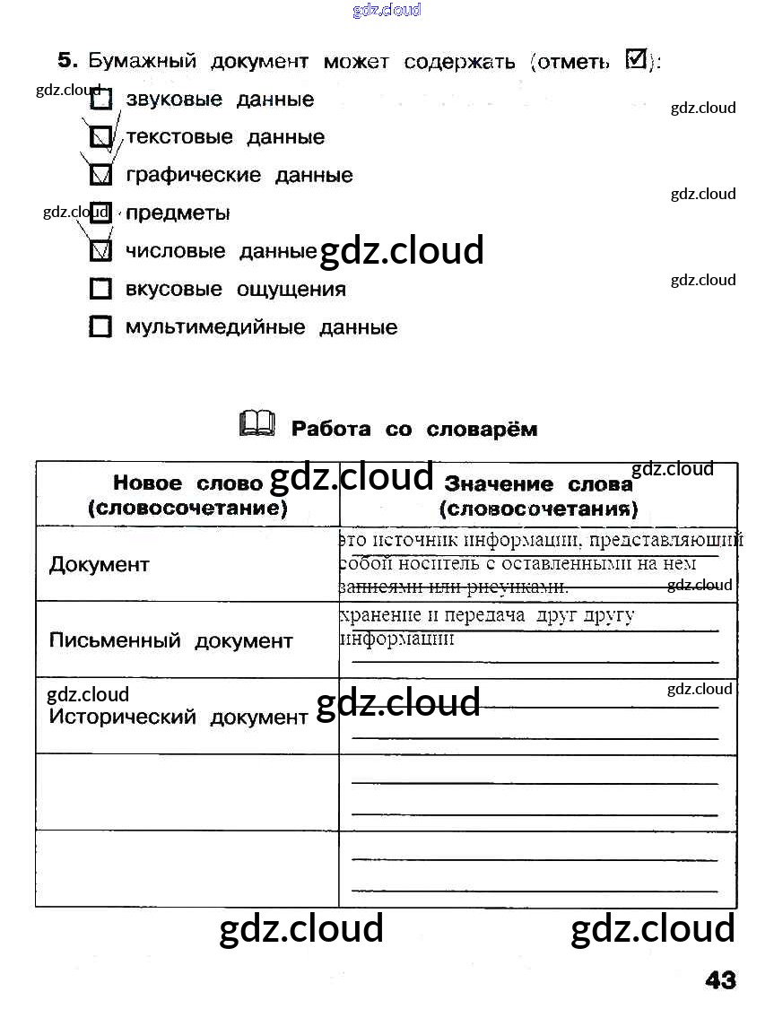 Ответ на задание стр. 43 Рабочая тетрадь Информатика за 2 (второй) класс Матвеева, Челак, Конопатова, Панкратова, Нурова УМК 2012 Часть 1, 2