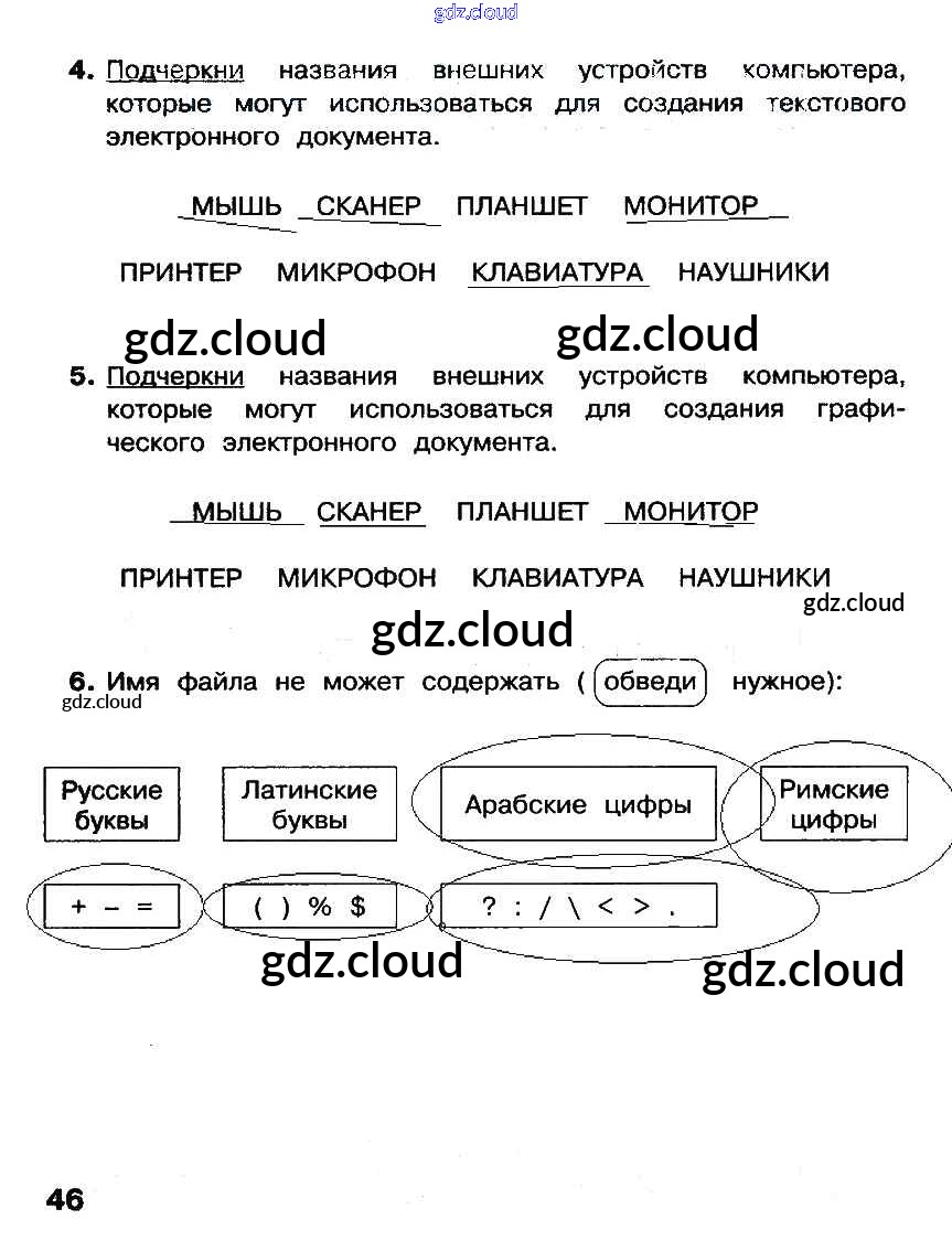 Ответ на задание стр. 46 Рабочая тетрадь Информатика за 2 (второй) класс Матвеева, Челак, Конопатова, Панкратова, Нурова УМК 2012 Часть 1, 2