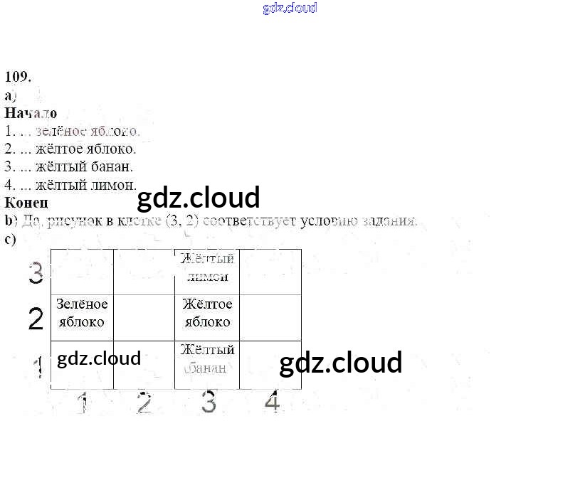Ответ на задание №109 Тетрадь для самостоятельной работы Информатика за 2 (второй) класс Бененсон, Паутова Перспективная начальная школа 2018