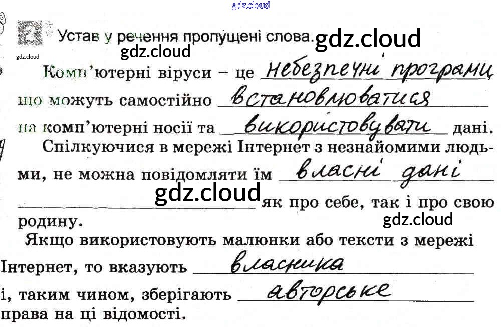 Відповіді до Авторське право та Інтернет по Информатике 3 класс Рабочая тетрадь Коршунова Генеза