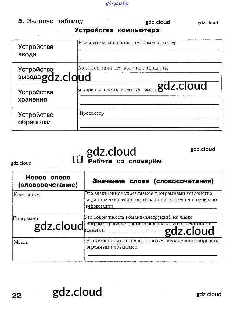 Ответ на задание стр.22 Рабочая тетрадь Информатика за 3 (третий) класс Матвеева, Челак, Конопатова, Панкратова, Нурова 2017 Часть 1, 2
