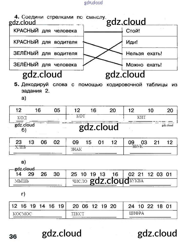 Ответ на задание стр.36 Рабочая тетрадь Информатика за 3 (третий) класс Матвеева, Челак, Конопатова, Панкратова, Нурова 2017 Часть 1, 2