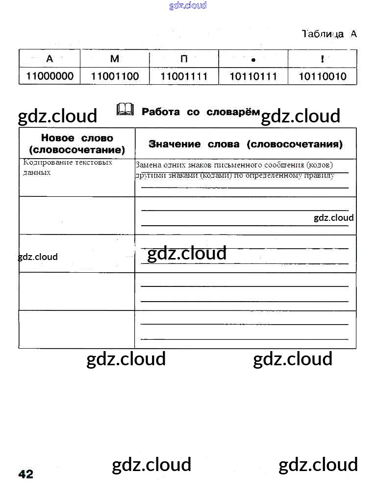 Ответ на задание стр.42 Рабочая тетрадь Информатика за 3 (третий) класс Матвеева, Челак, Конопатова, Панкратова, Нурова 2017 Часть 1, 2
