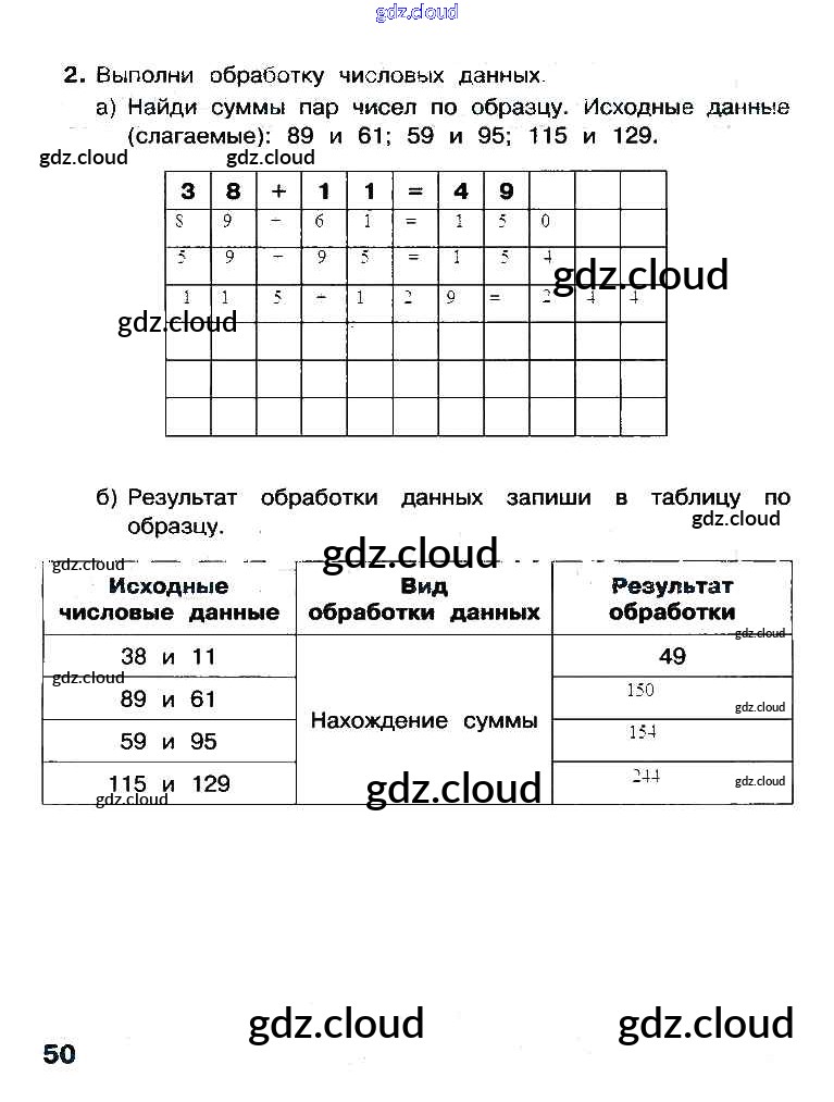 Ответ на задание стр.50 Рабочая тетрадь Информатика за 3 (третий) класс Матвеева, Челак, Конопатова, Панкратова, Нурова 2017 Часть 1, 2