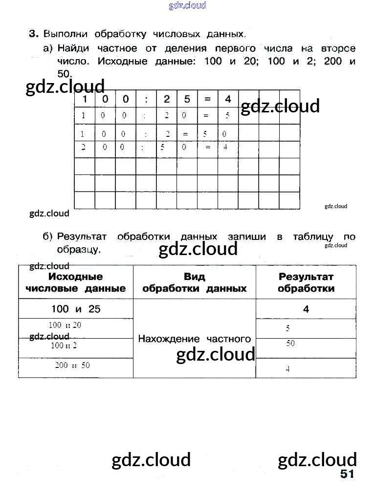 Ответ на задание стр.51 Рабочая тетрадь Информатика за 3 (третий) класс Матвеева, Челак, Конопатова, Панкратова, Нурова 2017 Часть 1, 2