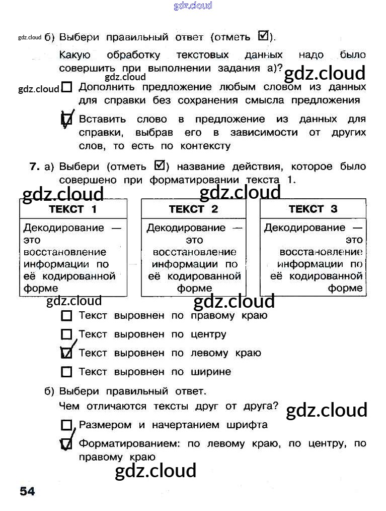 Ответ на задание стр.54 Рабочая тетрадь Информатика за 3 (третий) класс Матвеева, Челак, Конопатова, Панкратова, Нурова 2017 Часть 1, 2