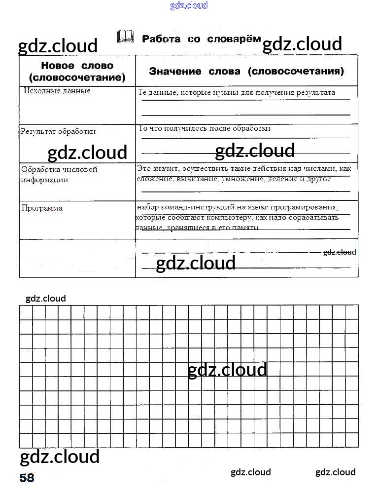 Ответ на задание стр.58 Рабочая тетрадь Информатика за 3 (третий) класс Матвеева, Челак, Конопатова, Панкратова, Нурова 2017 Часть 1, 2