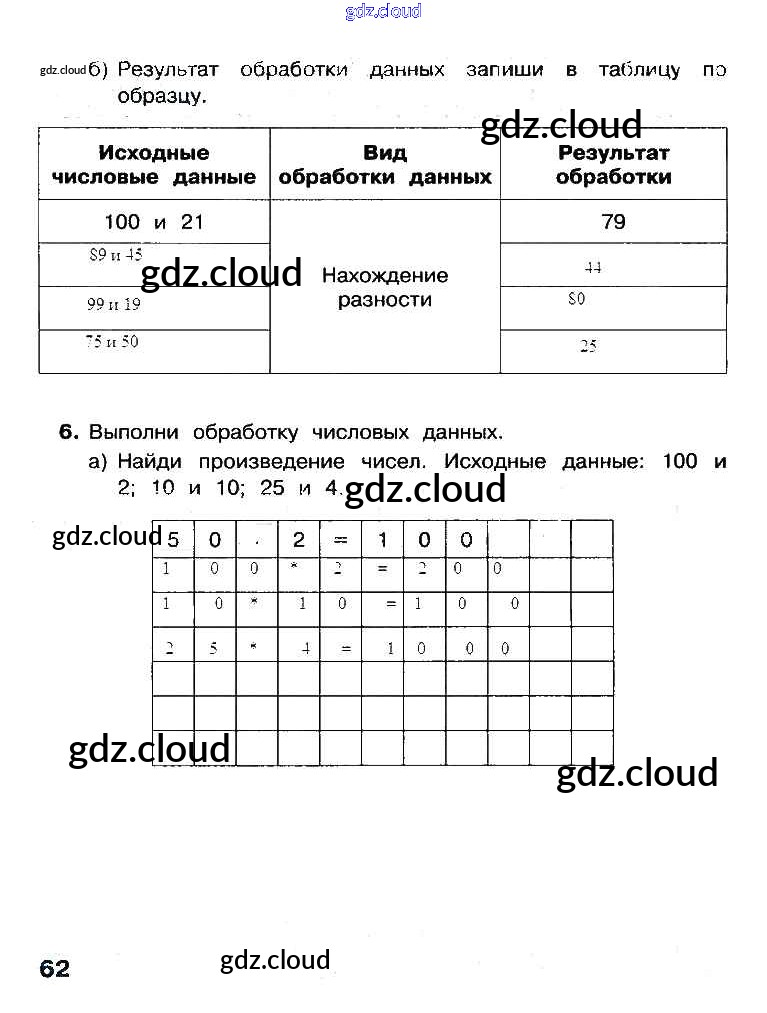 Ответ на задание стр.62 Рабочая тетрадь Информатика за 3 (третий) класс Матвеева, Челак, Конопатова, Панкратова, Нурова 2017 Часть 1, 2