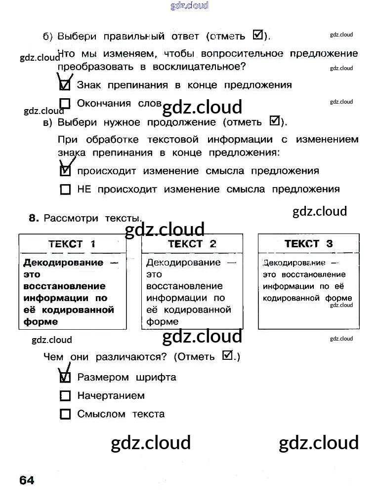 Ответ на задание стр.64 Рабочая тетрадь Информатика за 3 (третий) класс Матвеева, Челак, Конопатова, Панкратова, Нурова 2017 Часть 1, 2