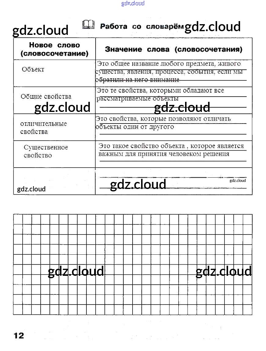 Ответ на задание стр.12 Рабочая тетрадь Информатика за 3 (третий) класс Матвеева, Челак, Конопатова, Панкратова, Нурова 2017 Часть 1, 2