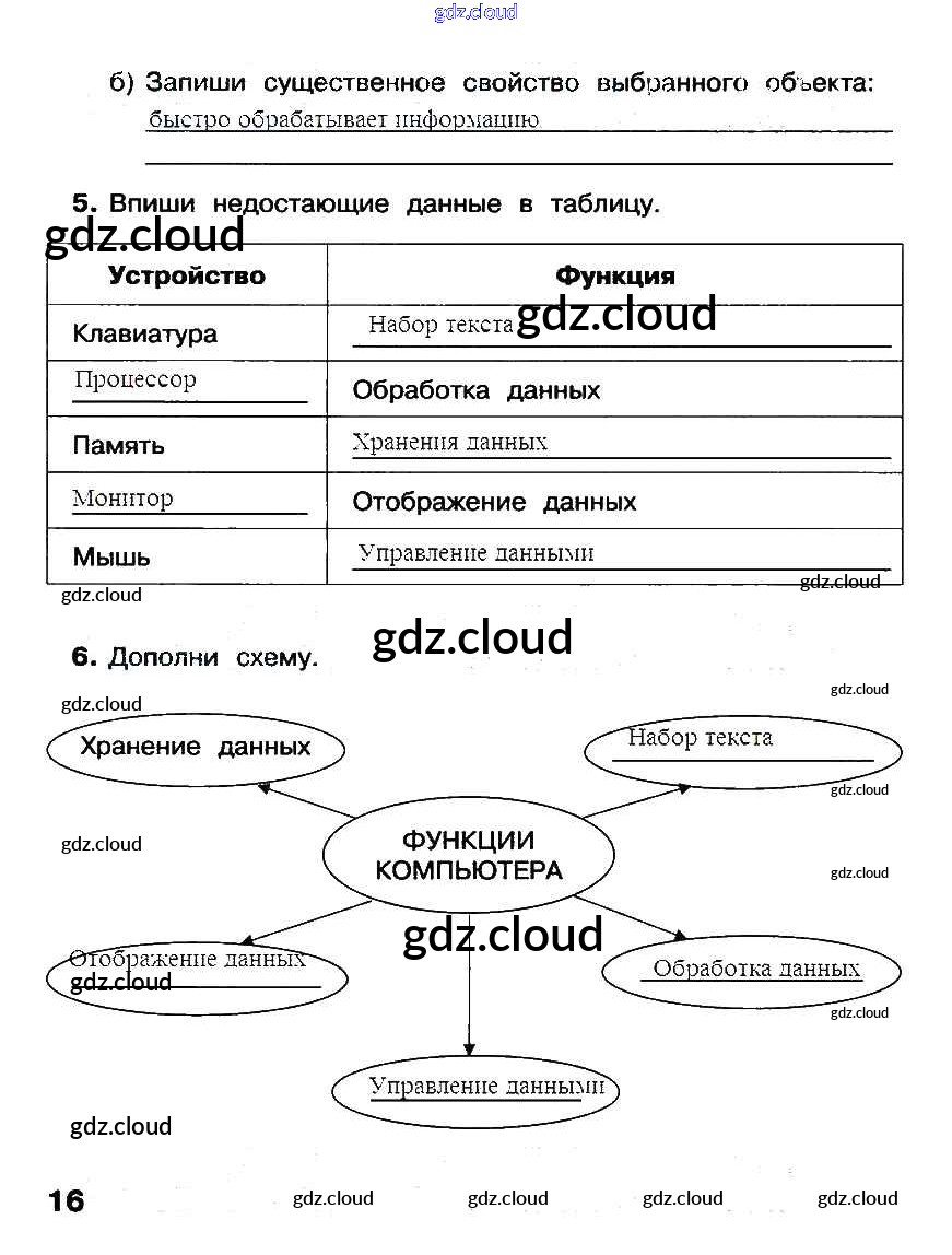 Ответ на задание стр.16 Рабочая тетрадь Информатика за 3 (третий) класс Матвеева, Челак, Конопатова, Панкратова, Нурова 2017 Часть 1, 2