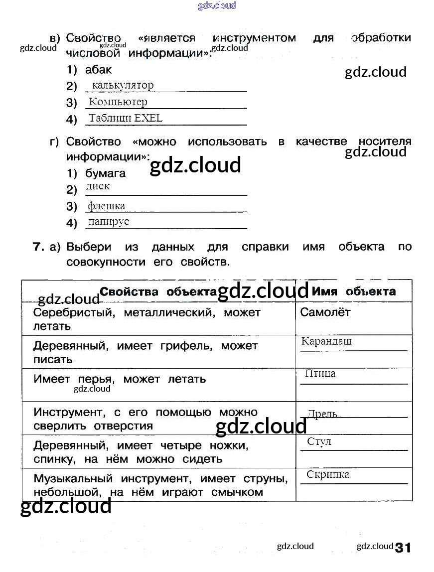 Ответ на задание стр.31 Рабочая тетрадь Информатика за 3 (третий) класс Матвеева, Челак, Конопатова, Панкратова, Нурова 2017 Часть 1, 2
