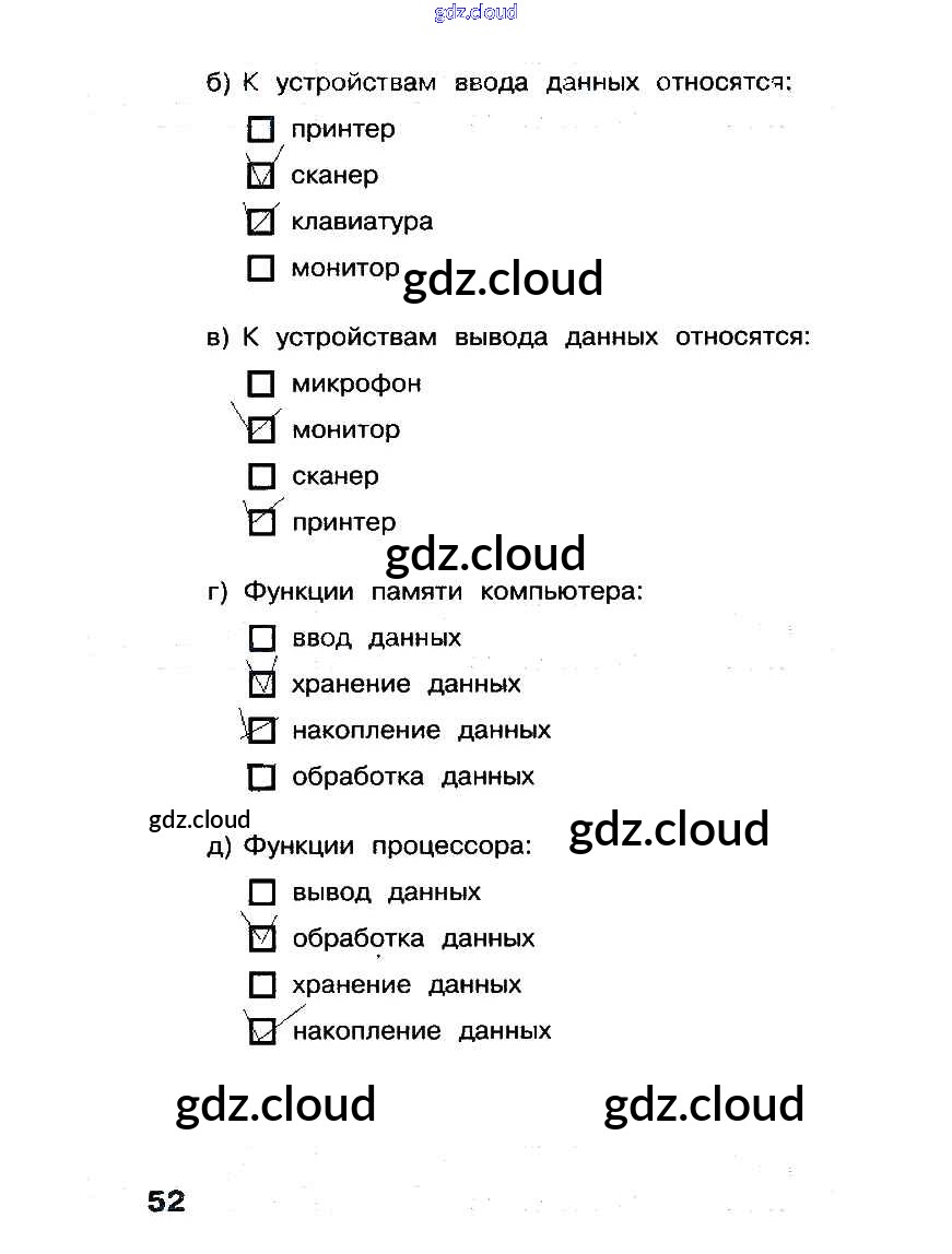 Ответ на задание стр.52 Рабочая тетрадь Информатика за 3 (третий) класс Матвеева, Челак, Конопатова, Панкратова, Нурова 2017 Часть 1, 2