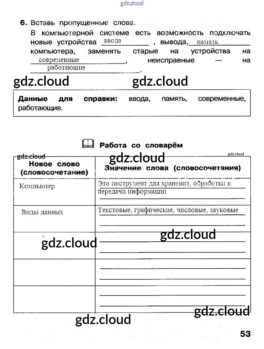 Ответ на задание стр.53 Рабочая тетрадь Информатика за 3 (третий) класс Матвеева, Челак, Конопатова, Панкратова, Нурова 2017 Часть 1, 2
