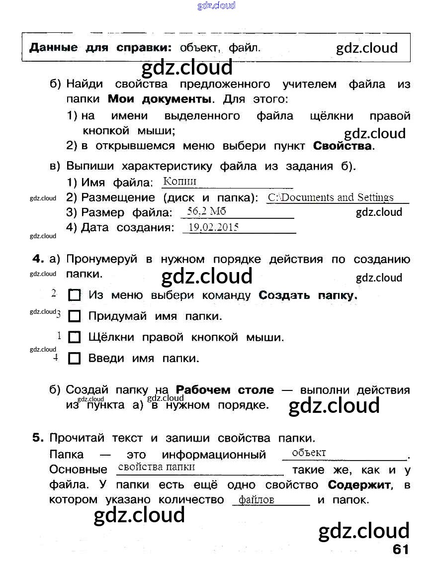 Ответ на задание стр.61 Рабочая тетрадь Информатика за 3 (третий) класс Матвеева, Челак, Конопатова, Панкратова, Нурова 2017 Часть 1, 2