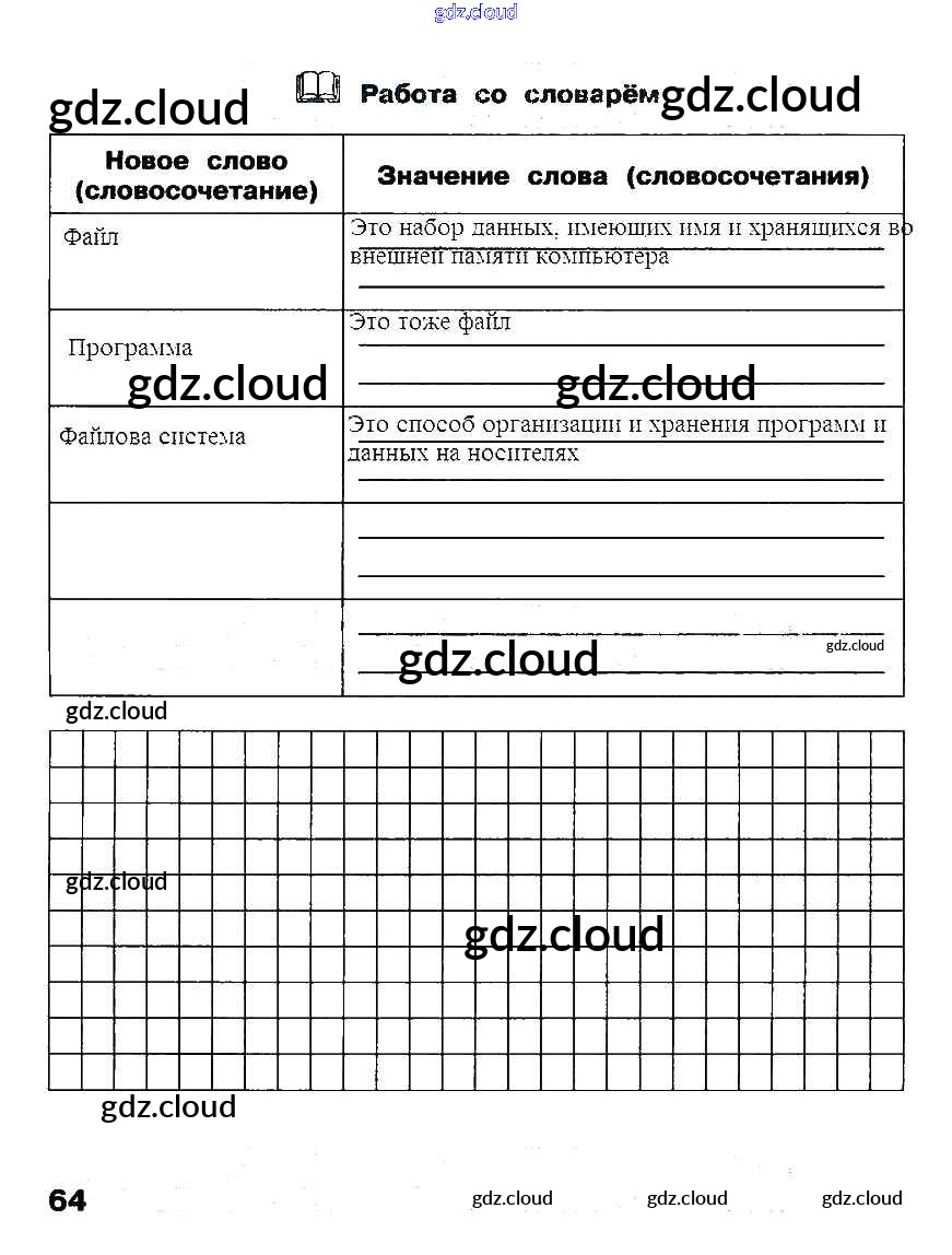 Ответ на задание стр.64 Рабочая тетрадь Информатика за 3 (третий) класс Матвеева, Челак, Конопатова, Панкратова, Нурова 2017 Часть 1, 2