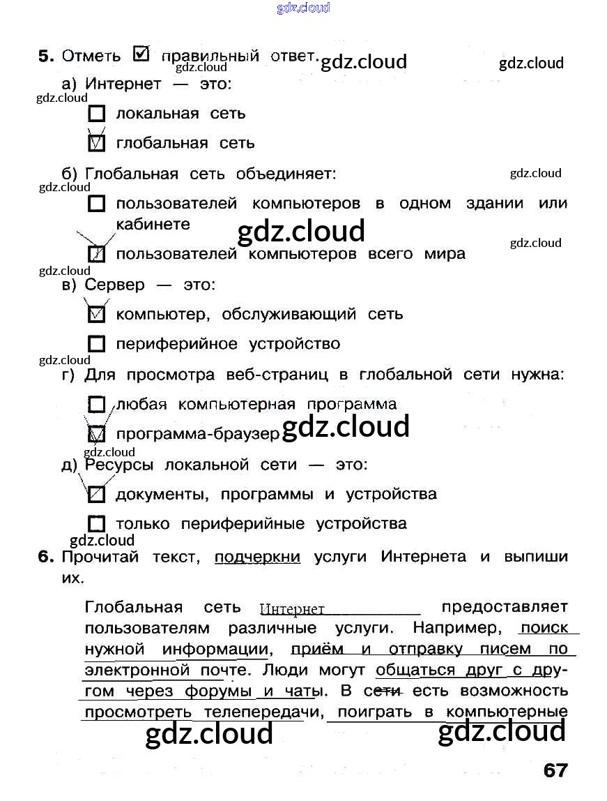 Ответ на задание стр.67 Рабочая тетрадь Информатика за 3 (третий) класс Матвеева, Челак, Конопатова, Панкратова, Нурова 2017 Часть 1, 2