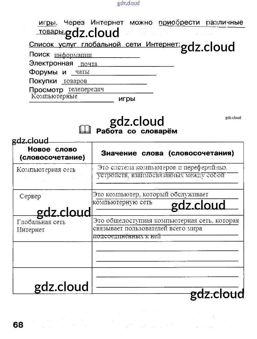 Ответ на задание стр.68 Рабочая тетрадь Информатика за 3 (третий) класс Матвеева, Челак, Конопатова, Панкратова, Нурова 2017 Часть 1, 2