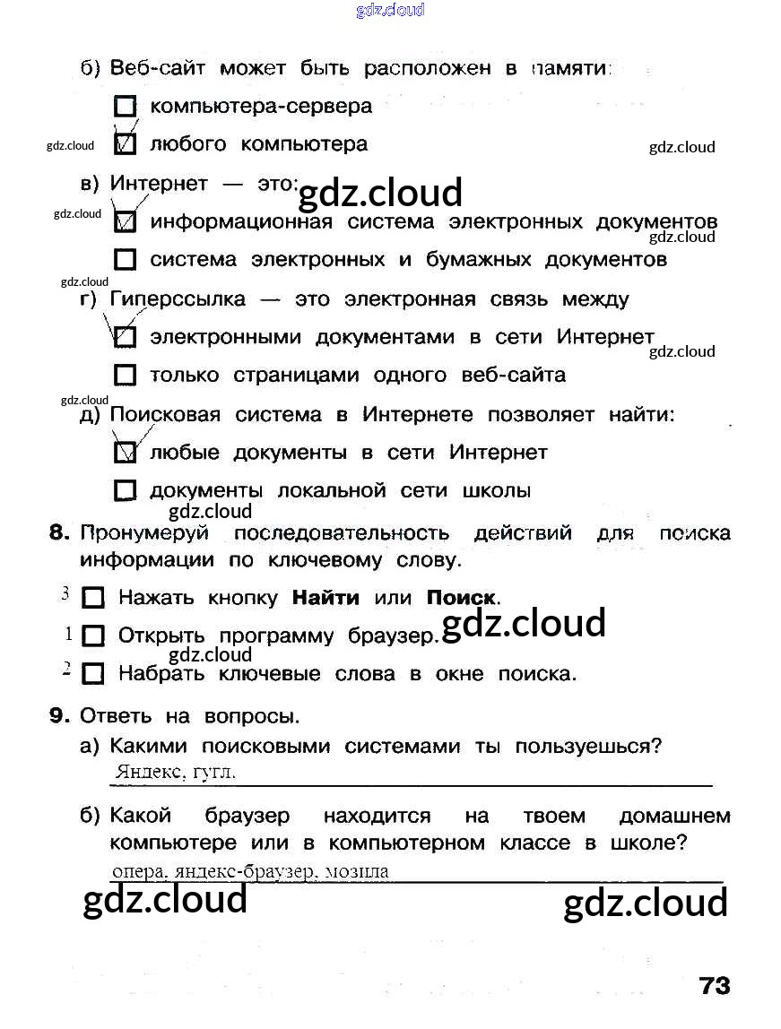 Ответ на задание стр.73 Рабочая тетрадь Информатика за 3 (третий) класс Матвеева, Челак, Конопатова, Панкратова, Нурова 2017 Часть 1, 2