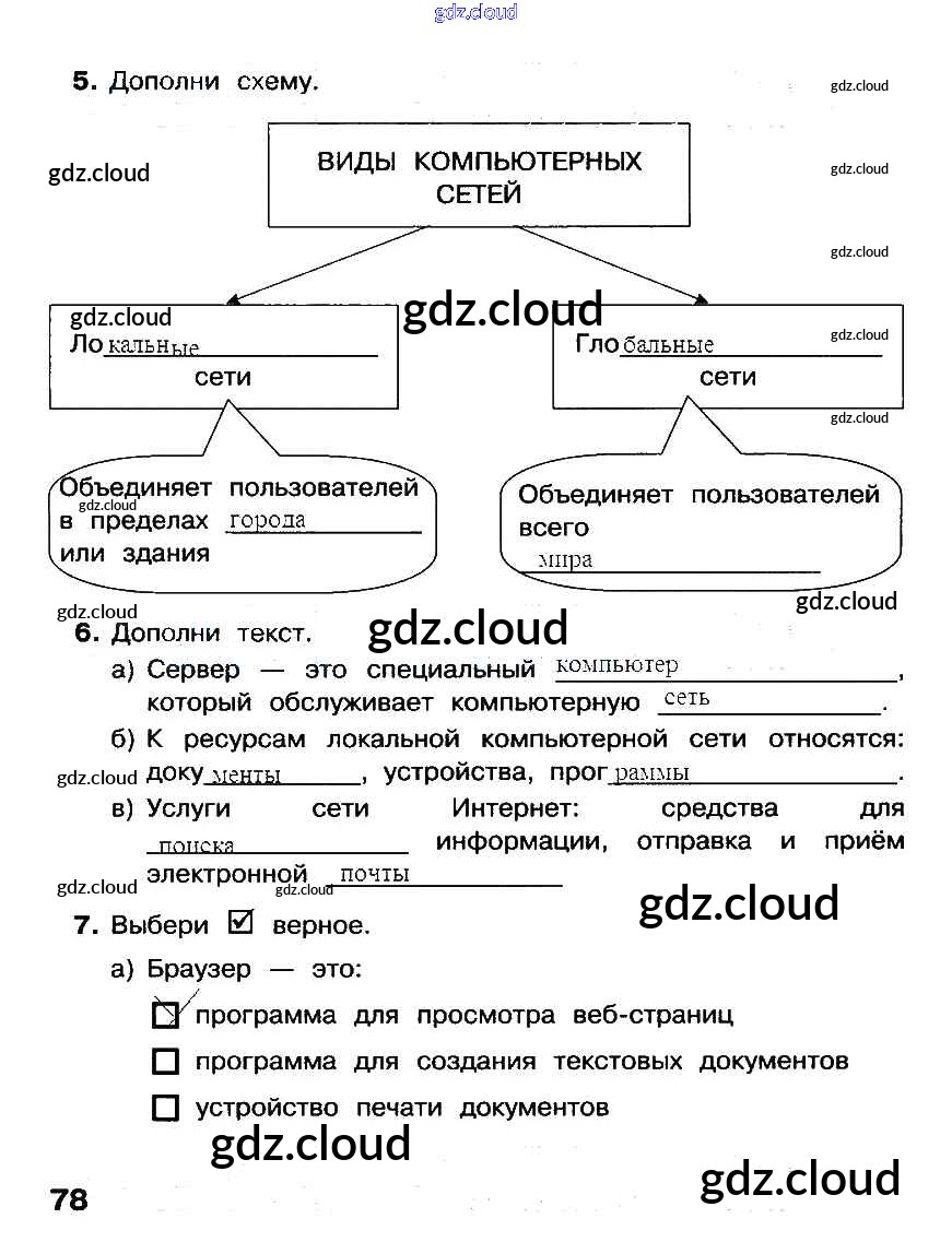 Ответ на задание стр.78 Рабочая тетрадь Информатика за 3 (третий) класс Матвеева, Челак, Конопатова, Панкратова, Нурова 2017 Часть 1, 2