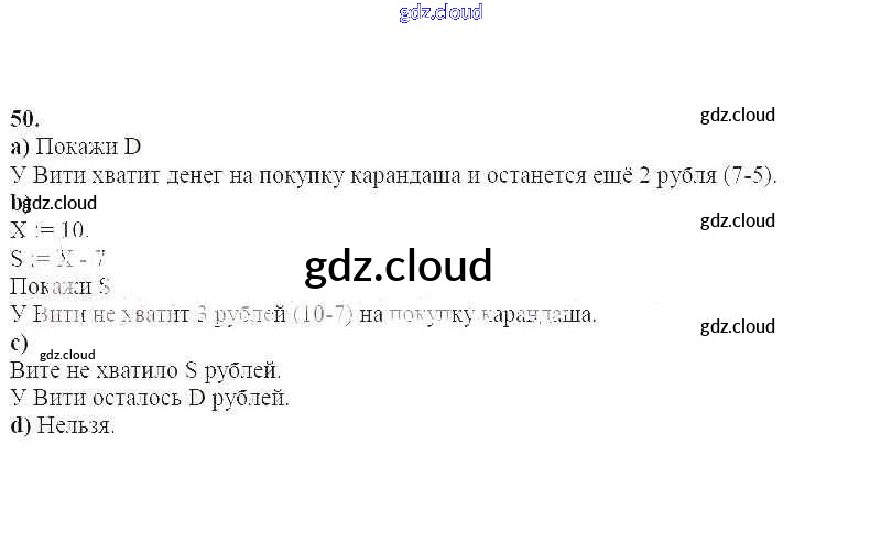 Ответ на задание №50 Тетрадь для самостоятельной работы Информатика за 3 (третий) класс Бененсон Перспективная начальная школа 2018