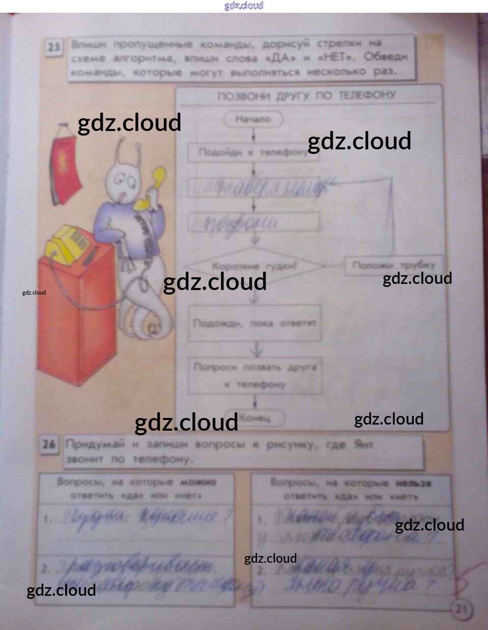 Ответ на задание стр.21 Учебник Информатика за 3 (третий) класс Горячев, Горина, Суворова Школа 2100 2008 Часть 1, 2