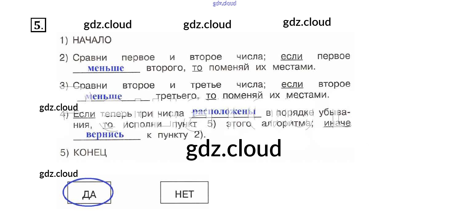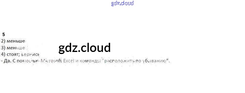 Ответ на задание 5 Рабочая тетрадь Информатика  за 4 (четвертый) класс Матвеева, Челак   2017 Часть 1, 2