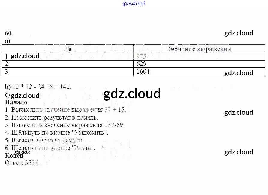 Ответ на задание 60 Тетрадь для самостоятельной работы Информатика за 4 (четвертый) класс Бененсон, Паутова Перспективная начальная школа 2018 Часть 1, 2