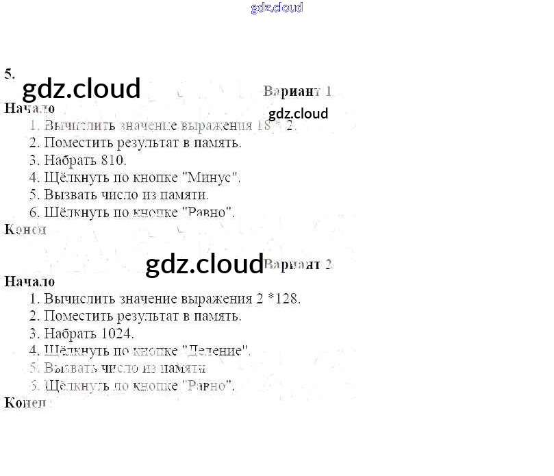 Ответ на задание 5 Учебник Информатика за 4 (четвертый) класс Бененсон, Паутова 2017 Часть 1, 2